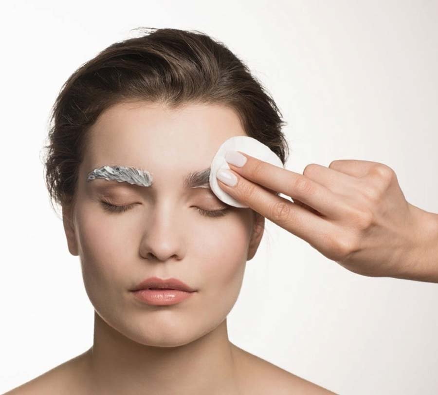 همانطور که قبلاً اشاره شد، ابتدا با پد خشک و سپس پد مرطوب، رنگ را از ابروها پاک کنید تا هیچ اثری از آن باقی نماند.