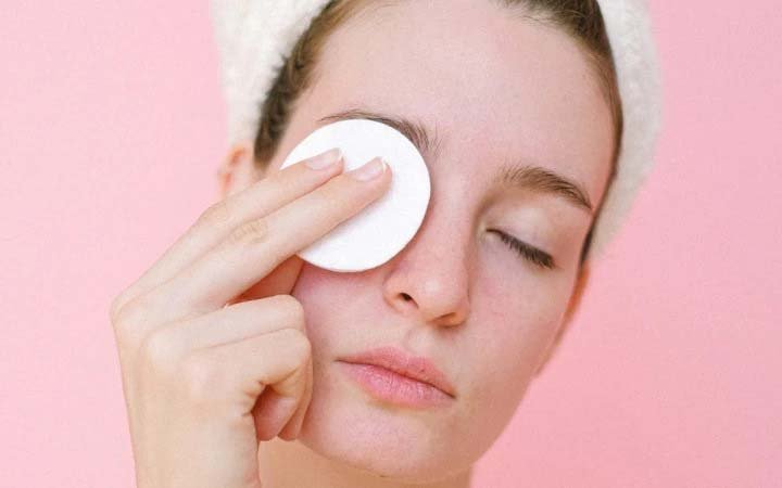سپس، از پدهای پنبهای آغشته به آب ولرم برای شستشوی نهایی استفاده کنید. با حرکات ملایم، باقیمانده رنگ را پاک کنید.